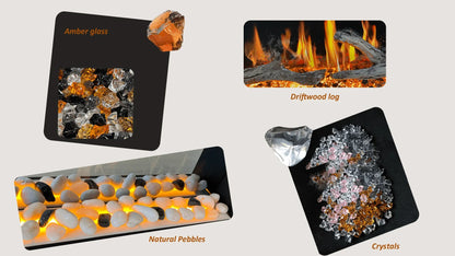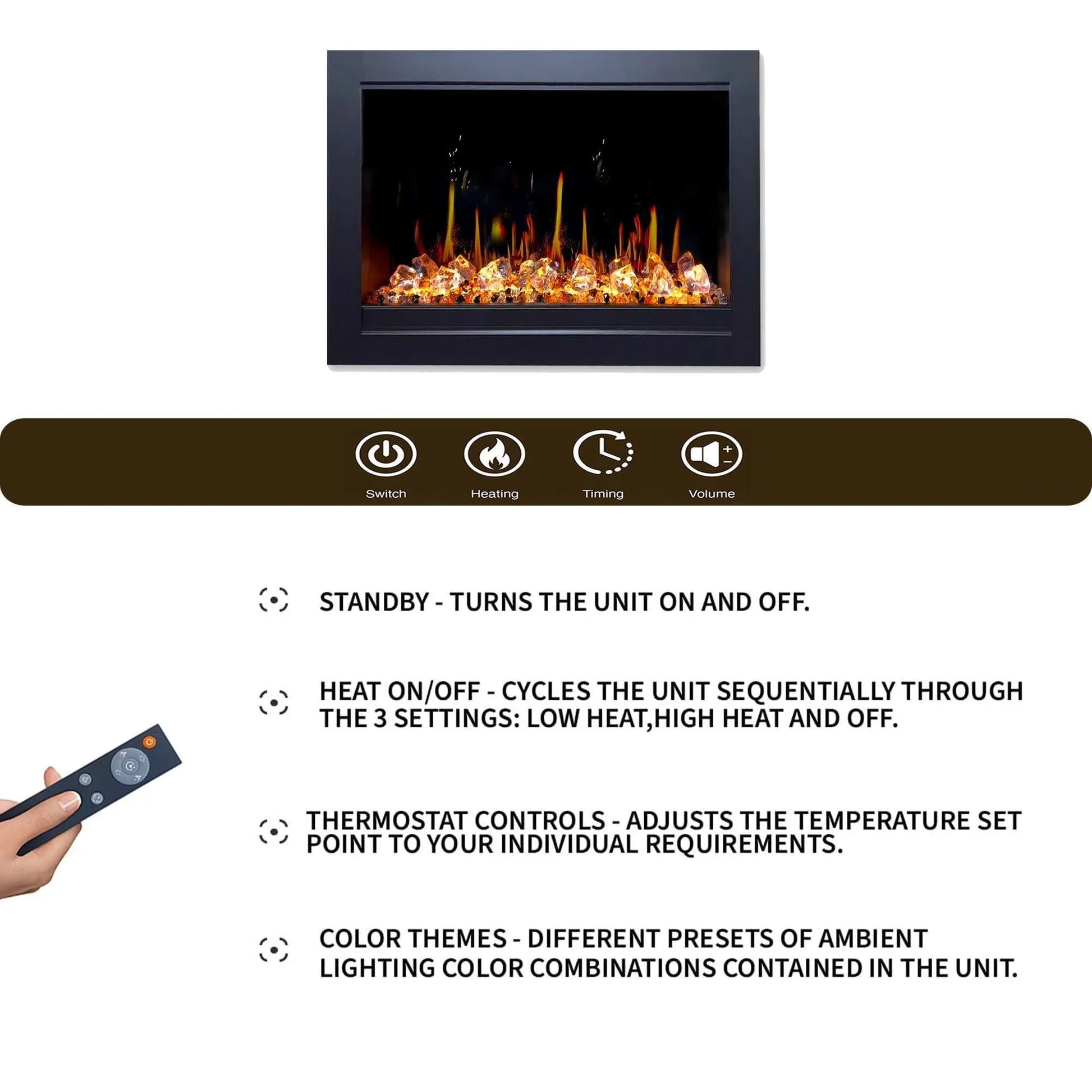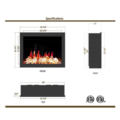 ZopaFlame's 30" Smart Electric Fireplace Insert provides a neat, convenient alternative to old-fashioned fireplaces. With an crystals log set, the insert fits into walls and the front glass plate can be easily removed.