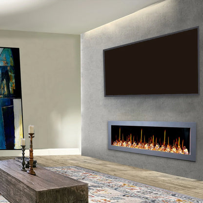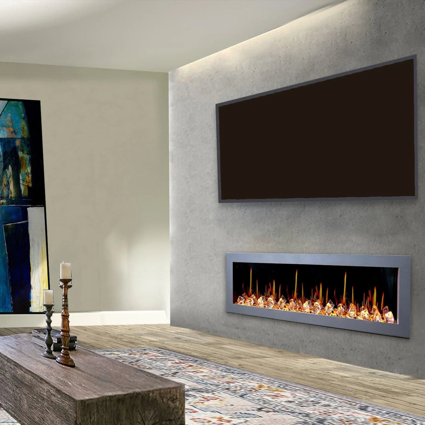 Foyer électrique intelligent mural linéaire de 78 pouces - Cristaux - Garniture argentée
